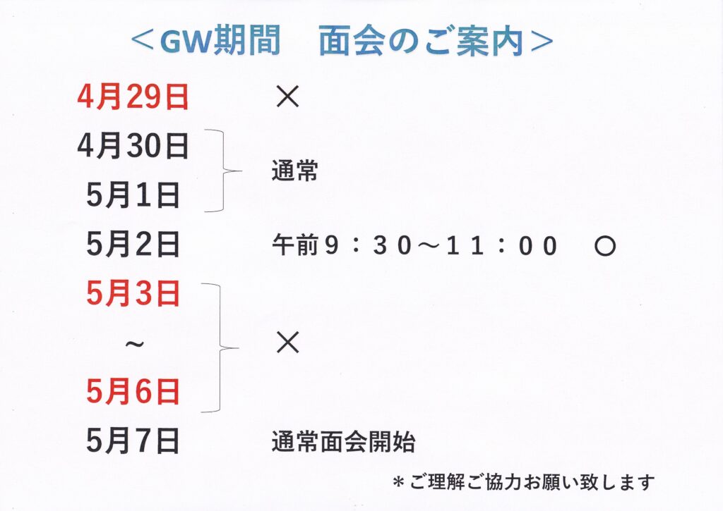 [記事詳細:GW 特別養護老人ホーム ご面会について]