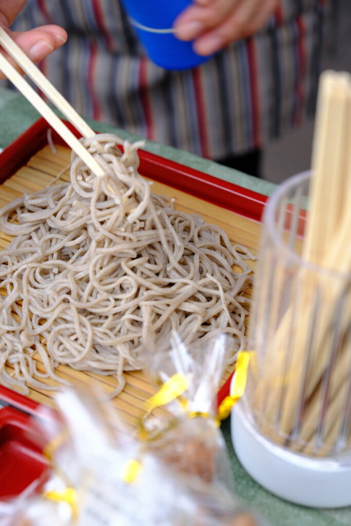 打ち立て蕎麦を限定30食、無農薬の野菜も販売