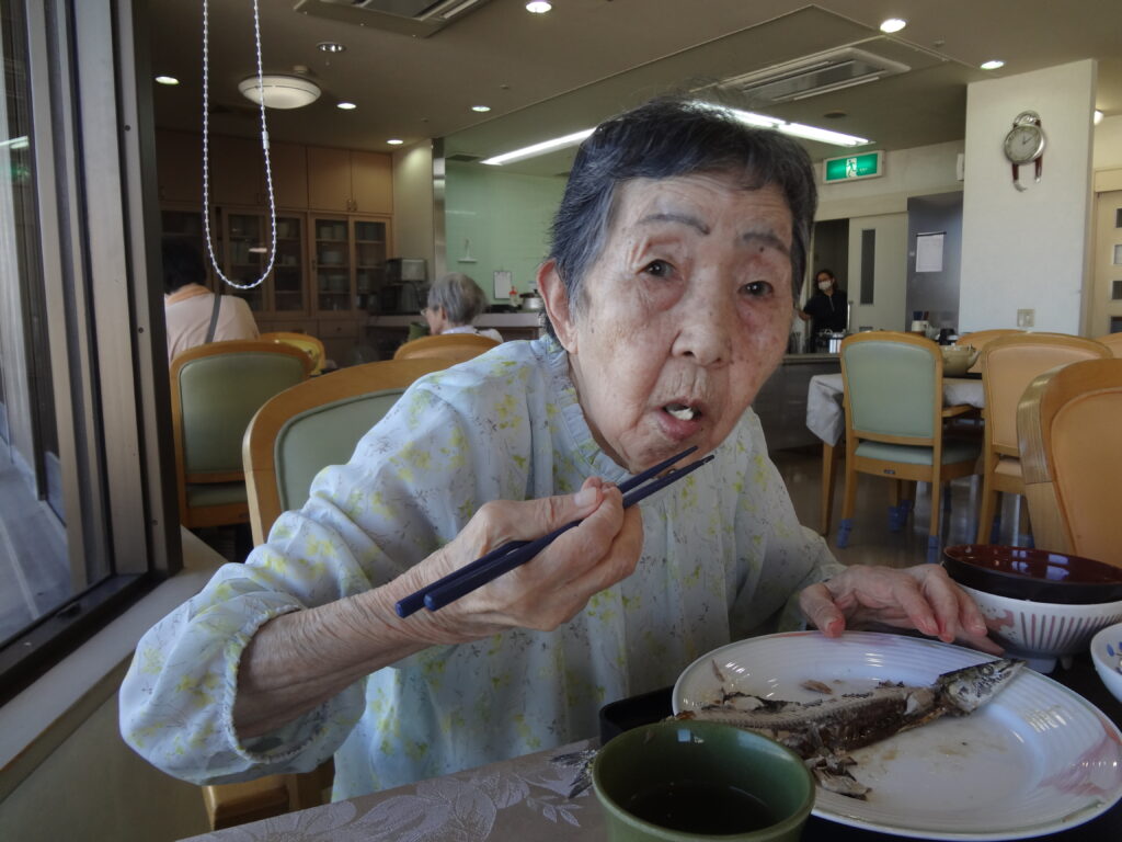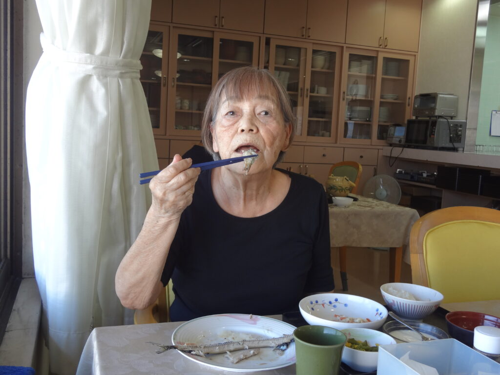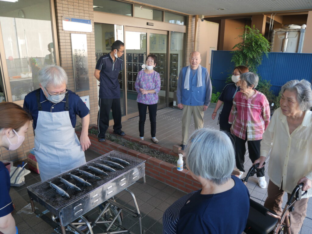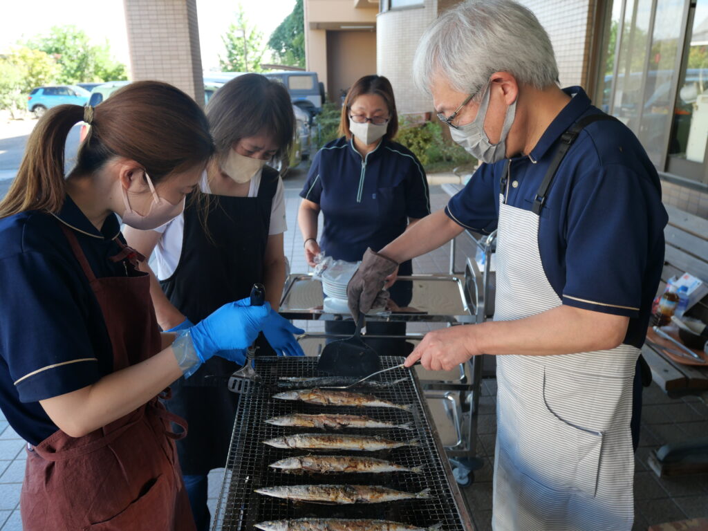 今年のさんまは豊漁で脂ものっていておいしいと評判♪そこでぜひ皆さんにも召し上がっていただきたいとこの企画を立てました。鮮度もよく、身がしっかりとしたさんまは、うちの“さんまマスター”の元、炭火でじっくりじゅわじゅわととてもおいしく焼きあがり、熱々のままお昼の食卓へ。「おいしい!」「これから焼き魚はいつもこうしてよ。」とか、様々な感想と笑顔をいただきながら、皆さんきれいに、ほんとにきれいに召し上がられ、秋の味覚、ご満足いただいたようです。また来年もできたらいいですね(^^♪