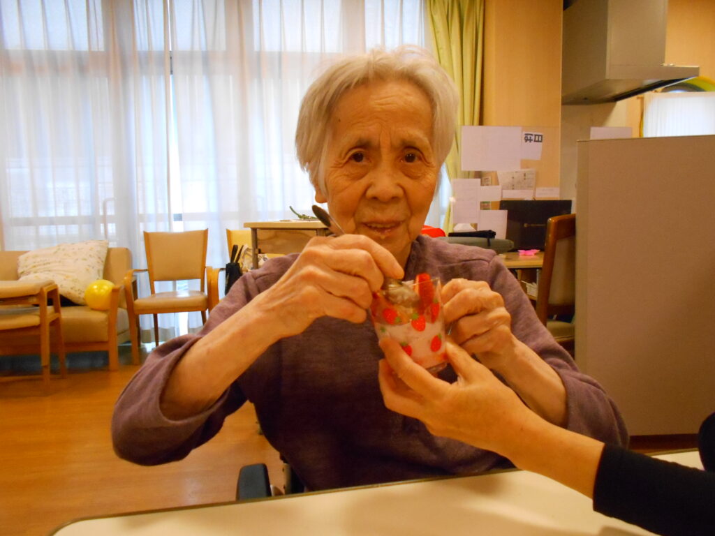 寒い冬の日でも「外を歩きたい」とおっしゃるほど、散歩への意欲がとても高く、その姿には私たち職員も驚かされます。いつまでも前向きに体を動かし、元気に過ごされているお姿は本当に素晴らしく、私たちにとっても大きな励みとなっています。これからもお元気に、毎日を楽しく過ごしていただきたいと思います。