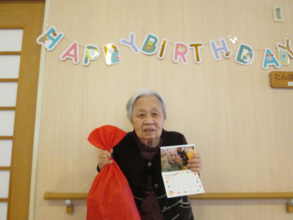 3月生まれのご利用者様のお誕生日会を行いました。この日は職員手作りのおやつを囲みながら、皆さんでお祝いしました。歌を歌ったり、お話をしたりと和やかで笑顔あふれる時間となりました。メッセージカードとプレゼントもお渡ししました。3月生まれのご利用者様は「誕生日を祝ってもらえるなんて」と照れながらも、大変喜んでいただけました。いくつになっても、お誕生日をお祝いしてもらえることは嬉しものですね。これからもお元気で素敵な一年をお過ごしください。
