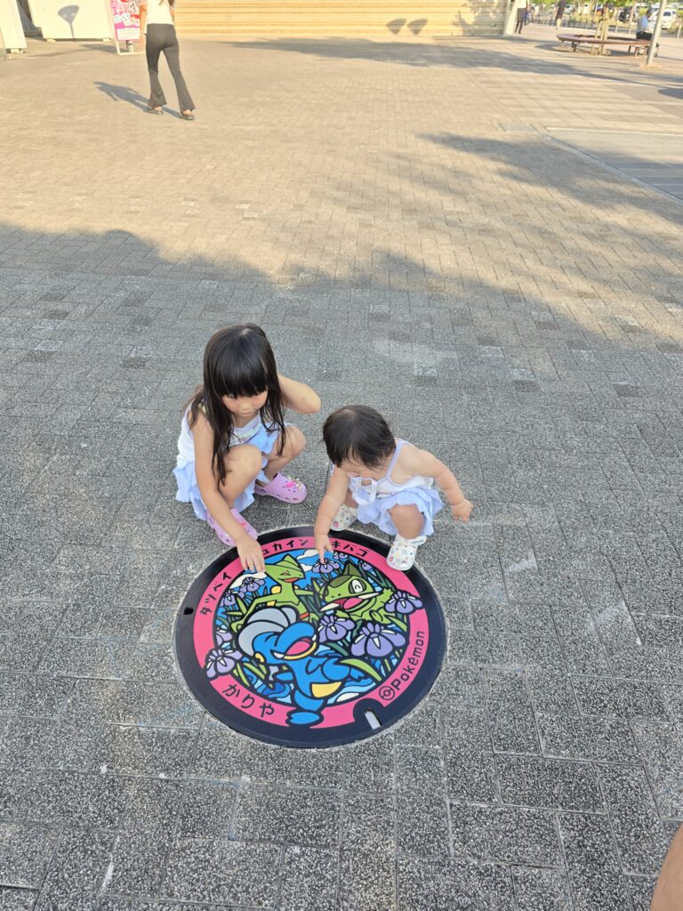 刈谷ハイウェイオアシスに「ポケふた」が設置されたとのことで最近、ポケモンブームがきている我が家は早速、見に行くことにしました。(「ポケふた」とはポケモンの絵が描かれたマンホール蓋のことです)とっても可愛い「ポケふた」に大興奮で記念撮影しました!日本には370種類の「ポケふた」が各地に設置されているそうです。まずは愛知県に設置されている9種類を制覇したいと思います!