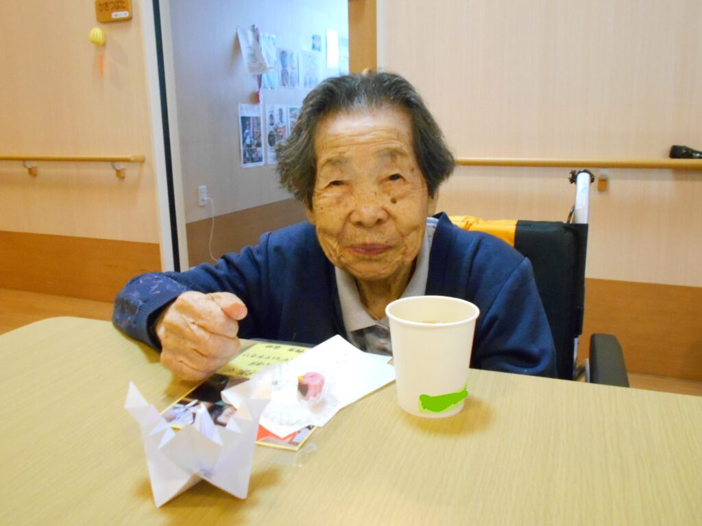 小規模特養では9/17に敬老会を実施しました。敬老の日は「多年にわたり社会に社会に尽くしてきた老人を敬愛し、長寿を祝う」ことを主旨とされています。当施設でも、ささやかではありますが季節のお菓子等でおもてなしをさせていただきました。